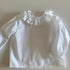 Camisa volante blanca con gomitas en los puños para que se ajuste perfectamente a cada niño. De primera puesta hasta los dos años.