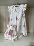 Vestido de niña con cuello volante, manga corta y botonadura en la espalda.