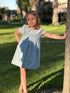 VESTIDO LINO AZUL VOLANTE Y MANGAS PIÑA